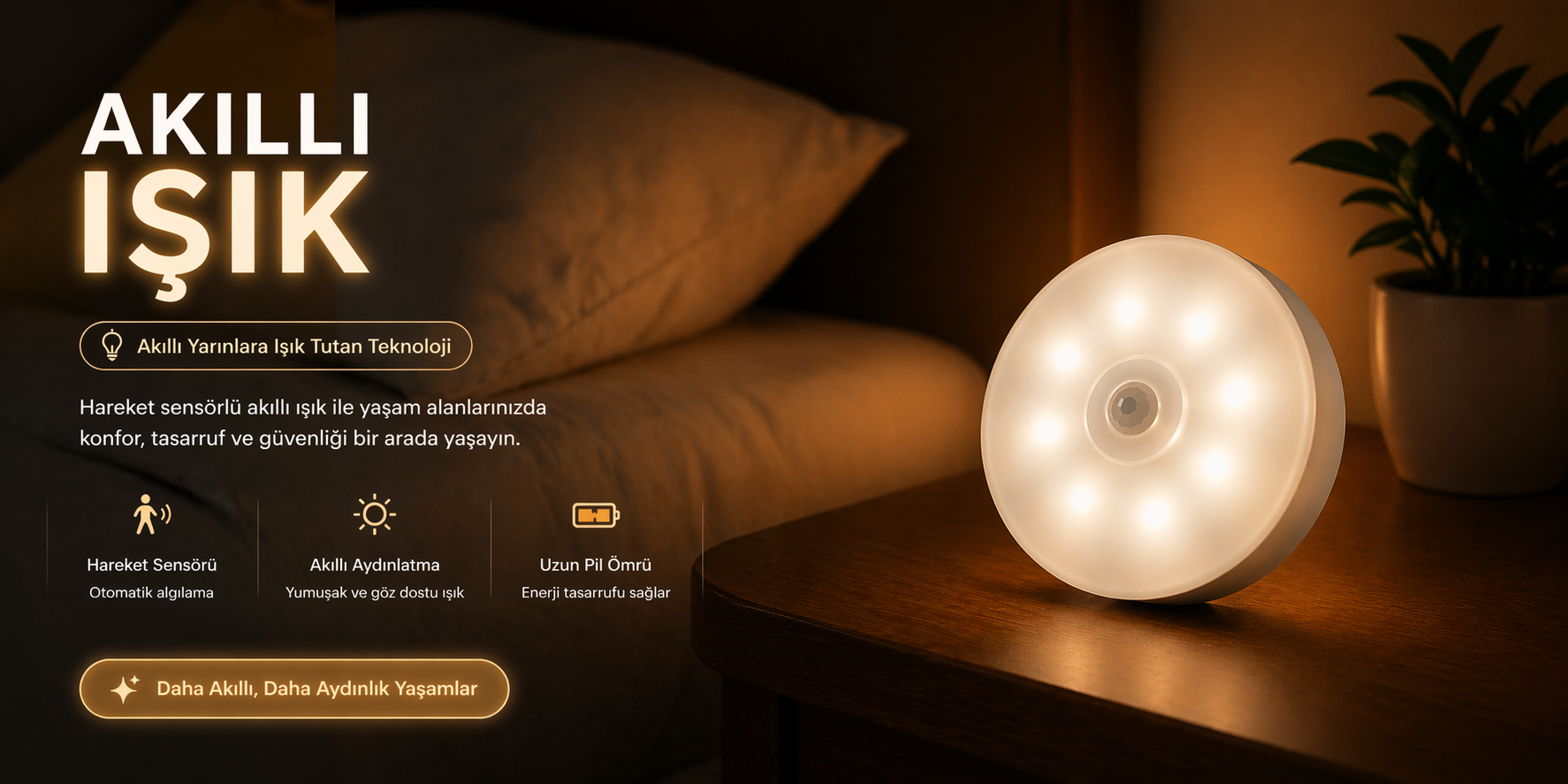 Gece kalktığında ışık aramak zorunda kalma.